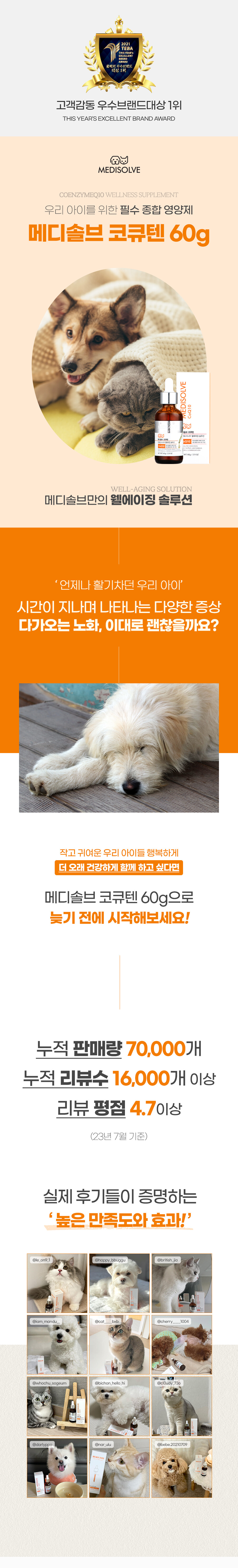 메디솔브 코큐텐 60g 강아지 고양이 영양제 액상 종합 면역 심장 기관지 기침, 2개