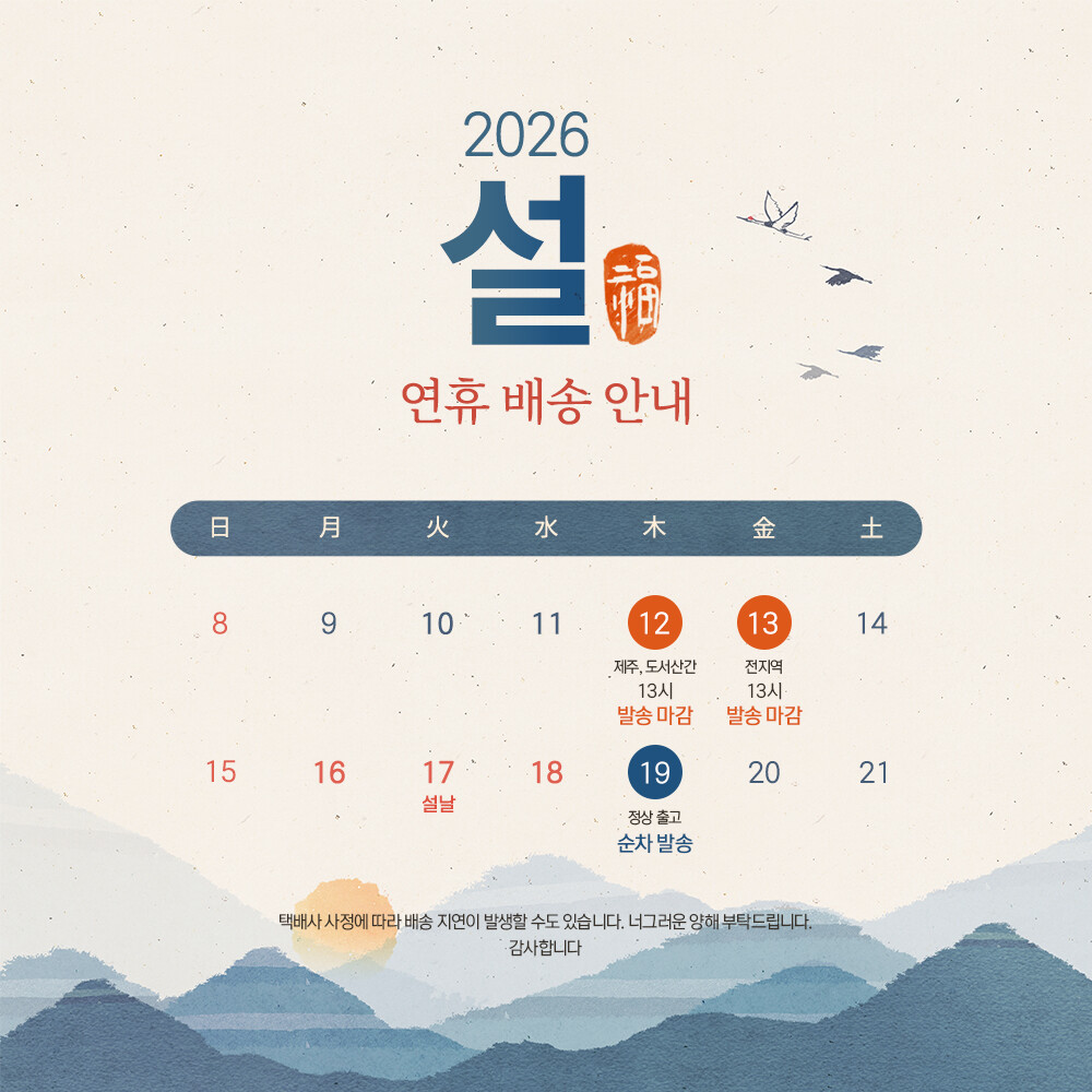배송기간 : 발송일로부터 1-3 영업일 소요
